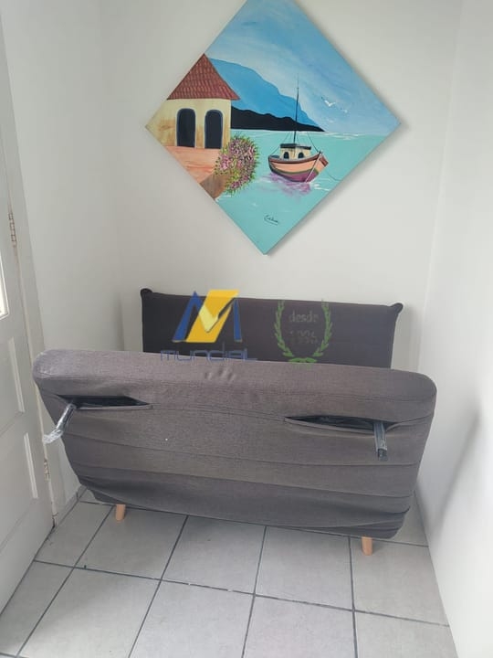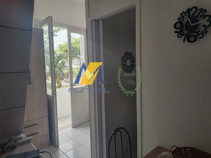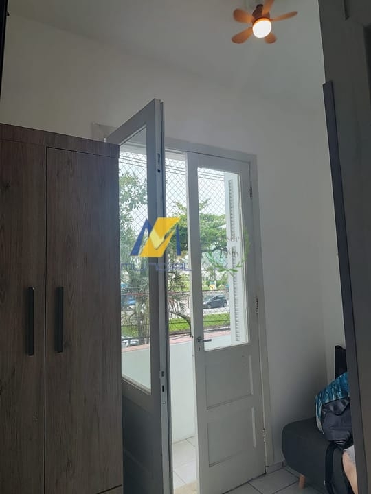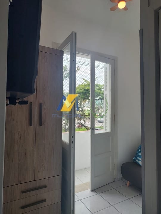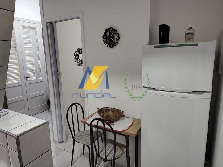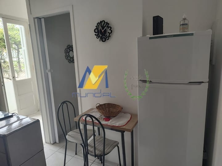 Apartamento Studio, reformado e mobiliado, de frente para o mar, com cozinha, sala, espaço para refeições, trabalho ou estudo, quarto e banheiro, muito bem organizados.