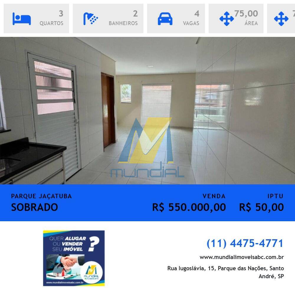 Sobrado à venda na Vila Curuçá, Santo André/SP, com 75 m² de área construída, vago e pronto para morar. Uma excelente oportunidade para quem busca um imóvel funcional, bem distribuído e em uma das regiões mais valorizadas da cidade.